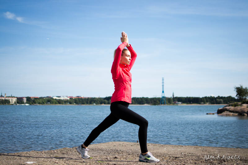 Ai vitsi kun lisäsin näitä kuvia koneelle ajattelin, että jep nyt mä oon se mimmi, kuka pysähtyy lenkkipolulla ottamaan blogikuvia venyttelemisestä :D En uskonut, että ihan näin nopeasti olisi tähän pisteeseen päästy. Paljon on kuitenkin tullut kysymyksiä siitä, miten paljon ja miten minä liikun. Kuvat tuovat kuitenkin aina postaukset mielestäni eloon, niin mikäs sen parempaa, kuin kuvata luonnossa fiiliskuvia vielä kun on siihen mahdollisuus.